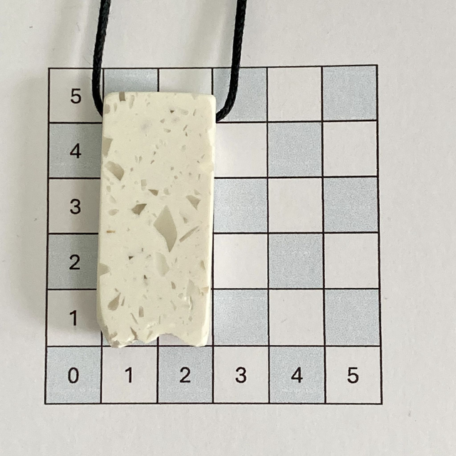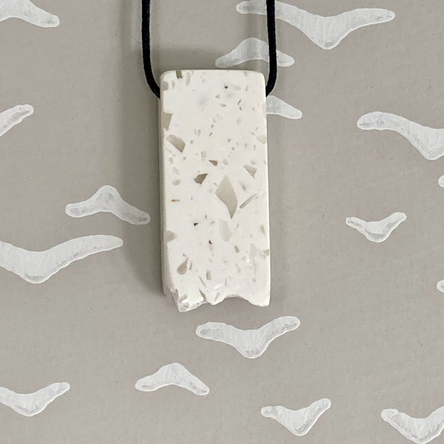 This handmade rectangular pendant is crafted from terrazzo-style acrylic, reclaimed from leftover worktop when our kitchen was renovated. Its speckled surface and raw edge finish highlight the material’s unique texture and origin. The pendant is hand finished to a smooth, satin shine. A sustainable statement piece for lovers of ethical fashion and minimalist design.