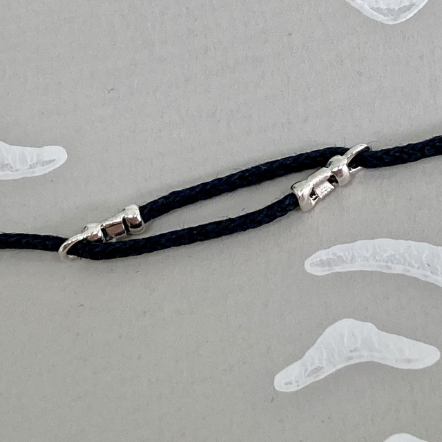 The pendant is roughly 5 x 3.5 x 1cm and finished with sterling silver findings. The necklace is black waxed cotton which is adjustable between 40-80cm (16-31") using sterling silver crimps.